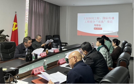 2022年11月29日上午8:40,我校文创协同工程、国际传播工程部分“双高”项目专题会在明慧楼311室召开。校党委委员、副院长李太斌出席会议,校党委副书记、纪委书记何强出席并主持会议。