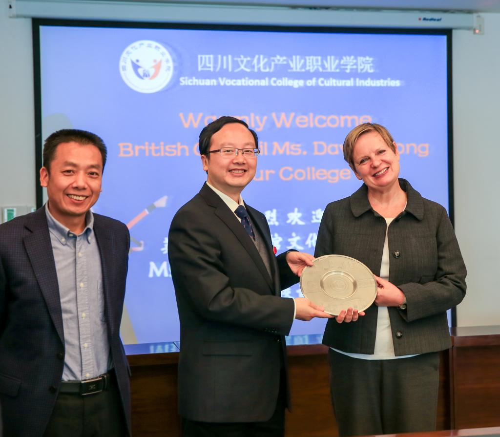 座谈会上,罗晓东对英国总领事馆文化领事朗晨女士一行表示热烈欢迎。他表示,我校着力培养懂文化、善管理并具有国际化视野的学生,努力把文化创意理念浸入到每个学生心田。他期待我校能在英国总领事馆的支持下,与英国开展文化和教育领域方面的合作。郎晨女士表示,中英两国的文化创意产业各有特点,我校丰富深厚的文化资源将会促进双方未来的合作。